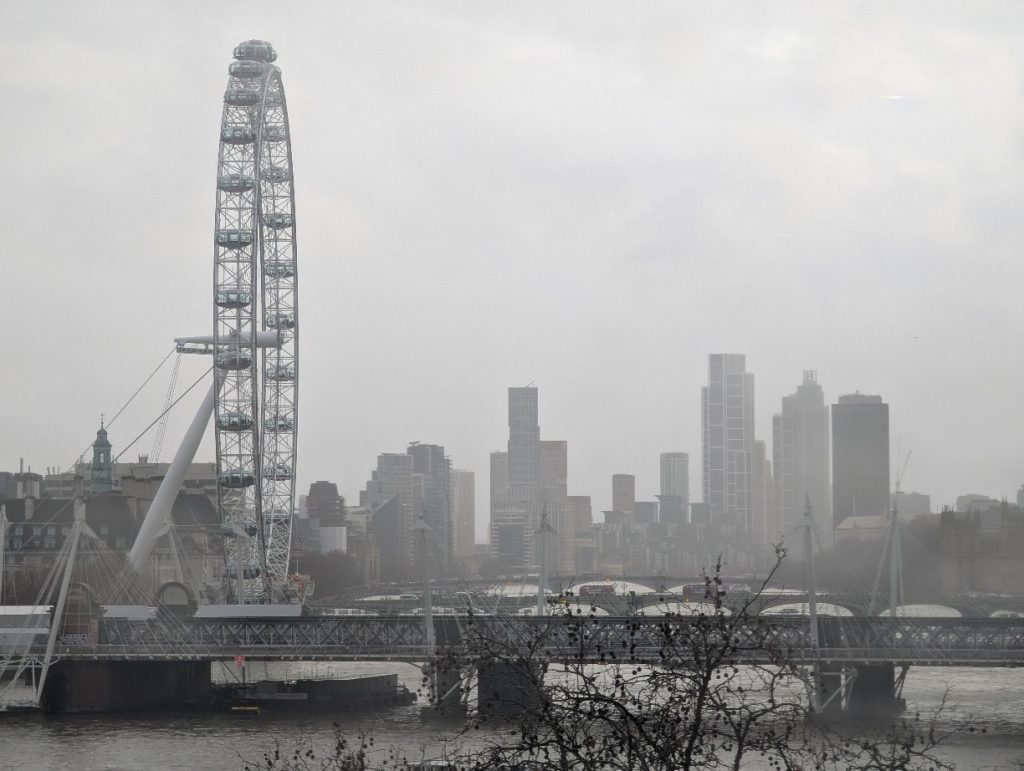 View from the tasting – a very wet and misty day in London