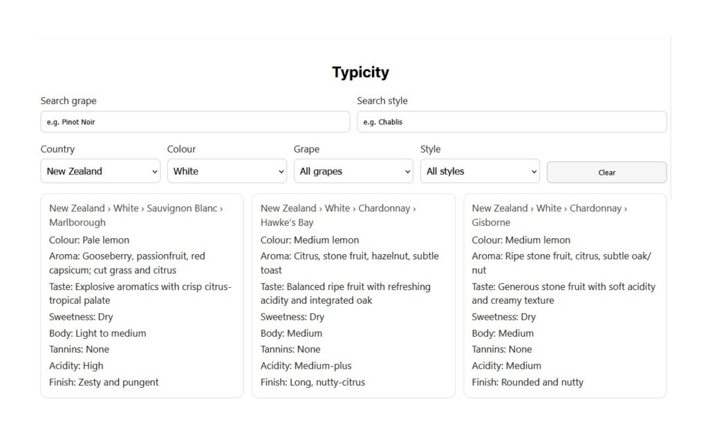 You can search by grape variety or wine style, or you can explore the data by country, wine colour or type, grape and style. It’s still very rough around the edges, but already quite useful. At the moment, it has 372 entries, and I’m continuing to work on expanding its scope.