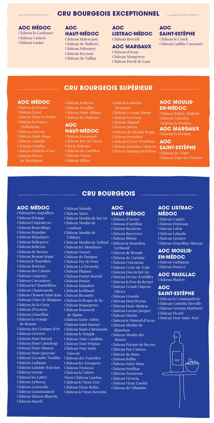 The Crus Bourgeois classification encompasses châteaux across eight key Médoc appellations: